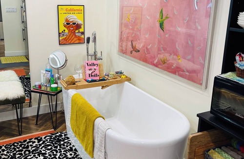 NEVER A CLEANING FEE: Remodeled in 2022, the studio bsuite boast 600 sq. ft. of stylish, personal space with a spa-inspired bathroom, full-size European Liebherr refrigerator stocked with bottled water, beer, coffee, Kind Bars, and other breakfast items to help kick-start your day. French Doors open to quiet time in the outdoor sitting area--or grab a lounge chair and get a tan by the *pool. Blackout blinds ensure privacy and solid sleep on the new Nova Form mattress. A short drive or walk to the El Paseo Shopping District (AKA 'The Rodeo Drive of the Desert') is where you will find delightful shops and plenty of dining options. The home is divided in half: owner-occupied side and the studio suite on the other. The studiosuite has its own a/c and heat, so you can find the perfect temp for yourself. Keyless (punch pad) entry. *The property has a large pool that is only heated in the summer months by the sun. Guests are welcome, of course, to sit by the pool and enjoy the sun with a chill libation or take a nap...mi casa es su casa! NO PETS.