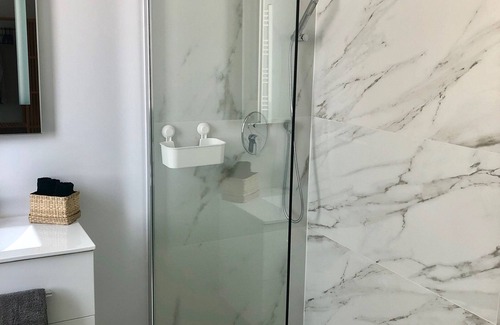 A studio on the same floor with 5 more, accessible by elevator or stairs, ideal for larger groups who want to stay together but separate. Everything is brand new; floors, walls, bathrooms, kitchenettes & furniture. All have independent AC units (heating/cooling), hot water, walk-in shower rooms with WC, sink & heated towel rails, comfortable furniture and beds. Kitchenettes have mini fridge/freezer, microwave oven, kettle, toaster, Nespresso machine, plates, glasses etc. No oven/hobs