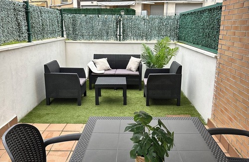 Apartamento con terraza de 40 metros de uso privado, y piscina dentro de la urbanizacion a 15 metros de la puerta del alojamiento, salón cocina, un baño con plato de duchar y una habitación doble con cama de 1,50. El apartamento cuenta con plaza de garage incluida en el precio, wifi, utensilios de cocina, electrodomésticos, ropa de cama, secador, toallas…
