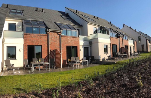 Gateway to the Sea is a new construction project with a total of 26 residential units. All apartments have either a terrace, balcony or terrace, high-quality furnishings, underfloor heating and controlled ventilation. Several apartments are available as a holiday apartment for rent to guests. On a neighboring property is currently a construction site. The area is prepared for the installation of residential buildings in modular construction. Therefore, it may cause annoyance by the noise of construction equipment.