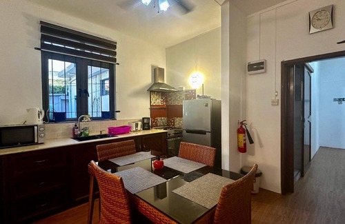 Apartment 2 with Garden View is situated on the ground floor, thus easily accessible to senior citizens and people in wheelchairs. The apartment is a 5-minute-walk away from eateries, supermarkets, groceries shops, pharmacy, and a wellness park. Located on a bus route, one can access any part of the island seamlessly.