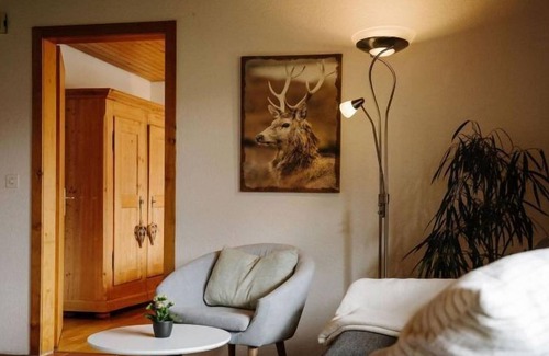 2.5 room apartment (70 m2) on the ground floor in a chalet style house with patio, in a beautiful and quiet location. Not far from the town center. 1 bedroom with 1 double bed for 2 person, living room with 1 sofa bed for 1 adult or 2 children Spacious Apartment in a Swiss style Chalet with mountain view. There is space for 4 Person, but we recommend 3 adults or 2 adults and 2 children. There is also a big garden area including a fireplace, which of course can be used. Seperate entrance. The garden terrace can be used and can be accessed directly from the apartment.