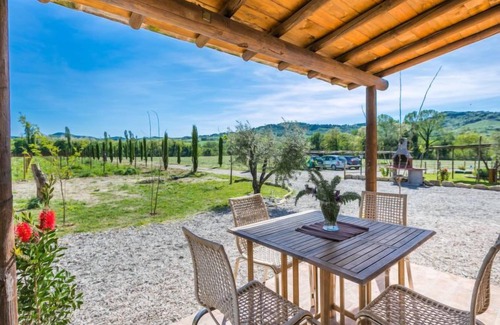 This carefully restored complex is located in the middle of the fields of the Val di Cecina, a few steps from the river of the same name. Much attention was paid to the construction of the swimming pool, where a hydromassage ( about 11 people) and a children's pool carved into the stone were created. Resort "Podere la Querciola", 2 storeys, renovated in 2021, surrounded by meadows and fields. In the district of Casino di Terra 11 km from the centre of Guardistallo, 14 km from the centre of Cecina, in a secluded, quiet position, 16 km from the sea. For shared use: property with plants and trees, swimming pool (6 x 11 m, depth 150 cm, seasonal availability: 01.May. - 15.Oct.). Children's pool, outdoor shower, hot tub, garden furniture, barbecue. In the complex: WiFi, washing machine (extra). Motor access (700 m via unmade road). Parking. Shop 11 km, restaurant 2 km, bar 2 km, bus stop 1.1 km, sandy beach "Marina di Cecina" 16 km. Nearby attractions: Volterra 24 km, Pisa 70 km, Firenze 100 m.