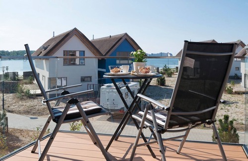 Bright, friendly apartment with 2 balconies overlooking the maritime marina and the lake. Suitable for 3 (4) persons. Underfloor heating, mosquito screens. Also her four-legged friend is welcome and please bring your suitcase, W-LAN free.