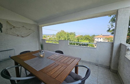 The Apartment Buza is located on the first floor of a family house in the village of Zidarići, which is just over 1500 meters away from the center of Malinska. The beach is 250 meters away from the apartment. The Apartment Buza is 35 m2 in size and can accommodate 2 people. It consists of one bedroom with a double bed, a dining room, a living room, a kitchen, a bathroom with a shower, and a covered balcony with partial sea views. You also have access to a garden, barbecue facilities, a parking space, air conditioning, satellite TV, a dishwasher, and a washing machine. Pets are allowed.