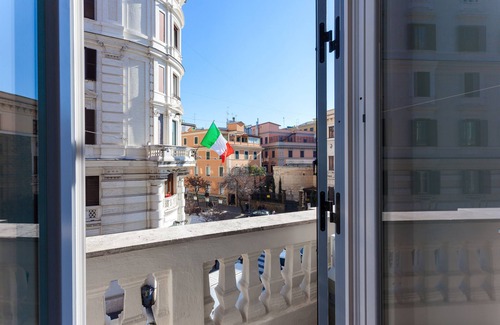 From the small balcony you can enjoy the view of the historic Passetto del Borgo (an elevated passage that links the Vatican city with Castel SantAngelo, erected in 1277 by Pope Nicholas III and served as an escape route for Popes in danger) and the beautiful shopping street Via Cola di Rienzo.