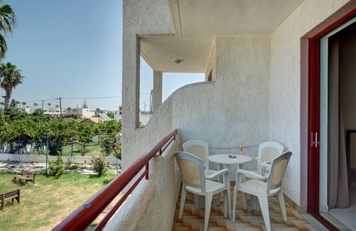 The holiday apartment Golden Sun two-bedroom apt 4, which is situated in Tigaki, overlooks the Aegean Sea. The 28 m² property consists of a living room, a kitchen, 2 bedrooms and 1 bathroom as well as an additional toilet and can therefore accommodate 4 people. Additional amenities include Wi-Fi as well as a TV. On top of that, a pool table is also provided for your enjoyment. A high chair and 2 baby cots are also available.