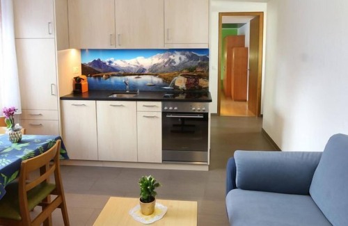 Comfortable, 46 m2 second-floor apartment with two rooms (sleeps up to three persons) Facilities: * One bedroom with wash basin (three beds) * Hot and cold running water * Fully equipped living-dining kitchen with ceramic hob, oven, fridge with freezer compartment, "Nespresso" capsule coffee machine, dishwasher, water & egg boiler and cheese fondue caquelon. (Raclette oven, table grill, toaster etc. are available on request - just ask!) * Radio-CD player * LED flatscreen TV (with CI+, headphones socket, USB port, VGA/D-sub and three HDI ports) with cable channels and the Saas-Fee information channel, safe, shower/toilet with hairdryer * West-facing and south-facing balconies (4 and 5 m² respectively) with views of the garden and the peaks of the Mischabel massif * Balcony furniture: three chairs with cushions, one deck chair, one table * Free Wi-Fi throughout the apartment