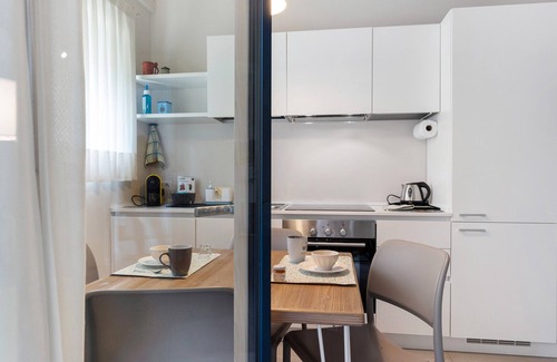 Apartment Green House 102 in Verona provides 55 sqm of space for up to 4 guests. You have 1 bedroom, 1 living room, and 1 bathroom. A private well-equipped kitchen is available for your use. The apartment offers step-free access and step-free interior. Your private amenities include air conditioning, WiFi suitable for video calls, TV, balcony, and elevator. This accommodation delivers practical comfort with convenient features for your stay.