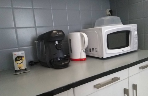 The kitchen is equipped with a refrigerator, as well as a coffee maker, an electric kettle, and a microwave. Bathroom amenities include towels, toilet paper, and soap. And thanks to the washer and dryer, you'll even be able to travel light. Other amenities at this 1-bedroom, 1-bathroom rental include a sofa bed, bed sheets, an ironing board, and heating.