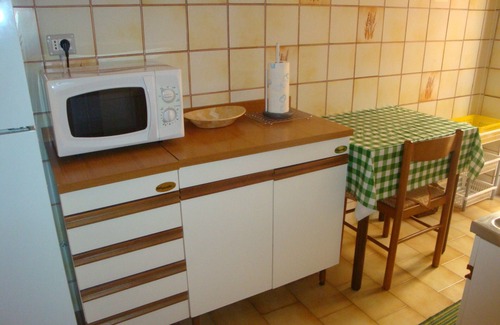 On the first floor is the entrance, the kitchen with a little balcony, the W.C. with the washing machine and a little utility room. The kitchen is well equipped with fridge-freezer, microwave-oven, gas-stove and oven.