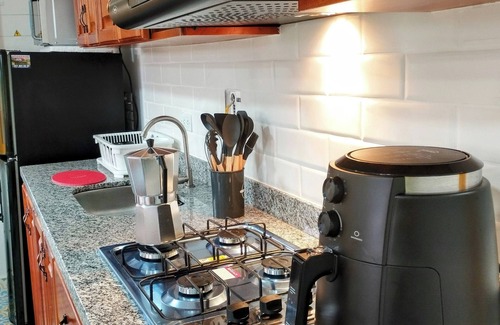 Our apartment, located on the second floor, is a comfortable, colorful place, with very good energy and a beautiful view of the countryside. It has two bedrooms, the main one has a bathroom, a double bed (160 x 190cm) and a double platform bed (140x180 cm) and TV, the other room has a double cabin (140x190 cm) and a platform bed (120 x 180 cm) and a large closet. It also has a living room, dining room, TV in the social area, fully equipped kitchen, social bathroom, clothing area with washing machine and balcony. We have soap, toilet paper. Likewise, we supply blankets, sheets and towels for body and hands.