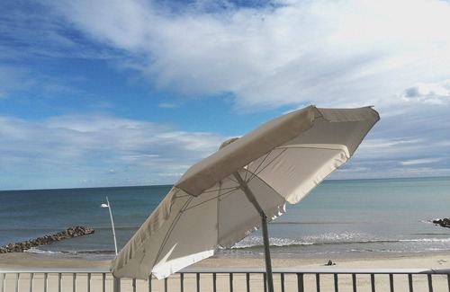 On the seafront with no street to cross, supervised swimming in summer, ideal for families with children, people who simply want to relax in the sun on the beach or on the terrace, or salespeople for the Exhibition Center.