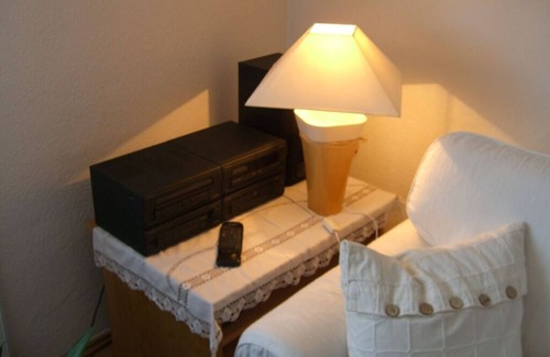 The romantic attic apartment on the 1st floor of a two-family house has access to the covered terrace and the garden (shared use) as well as a bicycle storage room. Living room with flat screen TV, stereo system and comfortable couch. Spacious bedroom with double bed (made up) and plenty of storage space in the closet. Second bedroom with single bed (another extra bed possible). Modern bathroom with bathtub and separate shower. Towels and large hairdryer available. Fitted kitchen with dishwasher, oven, fridge/freezer combination, espresso machine and cozy dining area. We provide coffee and tea to our guests (included in the price). A basic supply of spices, vinegar and oil is available.