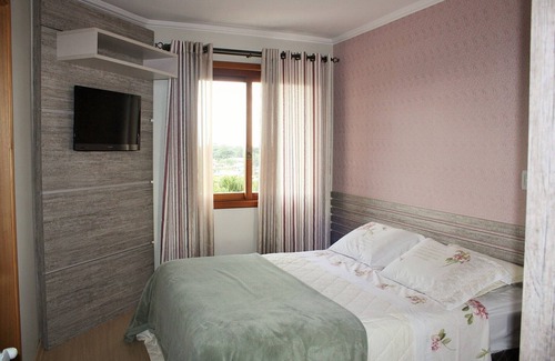 Apartment 1.3 km from the center and Rua Coberta, 600 meters from Expo Gramado, with 2 bedrooms (1 suite with whirlpool), 2 bathrooms, Large living / dining room, American style kitchen, Service area, Balcony and a Gorgeous view of the valley.
