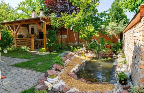 Fonyód 9 km from Balatonlelle: Beautiful 2-family house. In the resort, 600 m from the lake, 100 m from the beach. For shared use: garden 150 m2 (fenced). Private: patio, barbecue house. In the house: WiFi, air conditioning. Grocery 300 m, restaurant 500 m, grass beach 600 m. Owner lives in separate semi-detached house.