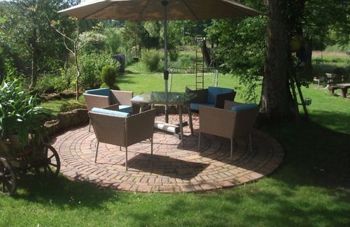 We offer 4 vacation apartments in a central yet quiet location, named after castle ruins in our region, all of which are comfortably furnished and have a separate bedroom. The respective terrace or balcony offers a view of our large garden with old shady trees, situated on a stream in the middle of the countryside.