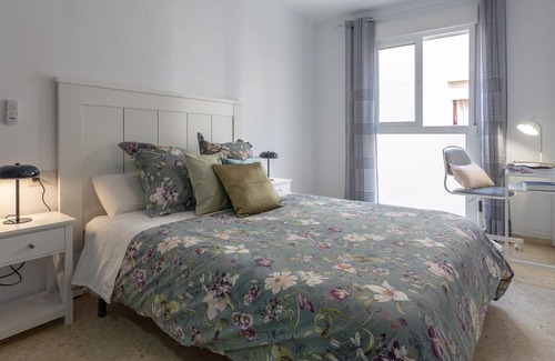 Bright and quiet two-bedroom apartment with a small terrace and free PARKING in the same building, for both a car and bicycles (up to six). It has a large, very well-equipped kitchen, a spacious living-dining room (with SMART TV) and a bathroom. One of the bedrooms has a work/study space. Free WIFI, high-speed internet (optical fiber of 1,000 megabytes, 1 GB). Located in the Central District, next to one of the most popular historical markets in the city, the Salamanca Market, with its beautiful monumental façade. You can walk to all the museums, monuments, and the main streets of the center. Fully equipped, the living room has a sofa-bed and a dining table for six people. It has a nice kitchen with a bar and stools. –Characteristics: It has a large living room, very bright, with an exterior window and also a small terrace, very pleasant, where you can have breakfast or lunch. It also has a SMART TV and a sofa-bed. It has a nice kitchen, very well equipped, which overlooks the living room with a bar with stools. The two rooms have exterior windows, the main one with a double bed and a work/study area, and the secondary one with two single beds. The bathroom is spacious, with a bathtub, and also has a bidet and a hair dryer. –Services: The kitchen is fully equipped, has a microwave, traditional and capsule coffee maker, kettle, and everything you need to cook. The apartment has a good quality WIFI internet connection and all the comforts for the use of our guests: air conditioning (hot/cold) in the living room, and ceiling fans and radiators in the bedrooms. There is also Smart TV, hair dryer, iron, etc. Guests have an exclusive free phone medical care (non-hospital) service during their stay through Quirón Salud, a leading hospital group in Spain. –Terrace and free parking: It is exceptionally located, in the Central District, next to the popular Salamanca market, one of the most important historical markets in the city, with its imposing neo-Mudejar style monumental façade. You can walk to all the museums, monuments and attractions of the city. The pleasant terrace allows you to have breakfast or eat outdoors, enjoying the excellent climate of the capital of the Costa del Sol. Parking in the center is practically impossible, however the apartment has a space in the building's underground car park, free for our guests, as well as private parking for up to six bicycles. –How to move: It is within walking distance of all the monuments and museums, next to the historic Salamanca Market and the Rando Museum. It is also close to supermarkets, neighborhood stores and a wonderful artisan bakery in the same building. It is easy to get to from the airport and from the central bus and train stations. –To consider: This is a tourist accommodation that meets the Olédays EcoFriendly certification requirements, and has been recognized with the WeRespect certification. It has also been awarded the distinctive 'Tourism Quality Commitment' NO SMOKING: Smoking is prohibited inside the apartment. It is allowed on the terrace. CHECK IN: Arrival at the accommodation is from 15:00, but we make an effort to receive our guests at the time they need, upon request. PETS: Pets are welcome, the owners will be responsible for the well-being of the animal and for any damage they may cause. The rules of the house and the community of owners must be taken into account. €20 will be charged upon arrival for cleaning for each pet. We can provide bed and feeder-drinker, upon request. BEDS AND SOFA-BED: The apartment has a 150x200cm bed in the main bedroom and two 90x200 bed in the secondary bedroom. It also has a sofa bed in the living room. When using the sofa bed, it must be taken into account that, due to the double function of this piece of furniture, it cannot provide the same sleeping comfort as a normal bed, so it could be uncomfortable for certain people, especially during stays long. Unless stated, services such as cleaning, bed linen, towels etc. are not included in the price of this rental. If pets are allowed (information in the advertisement), charges may be applicable. Only equipment mentioned in this advertisement are present. Equipment not mentioned are not considered to be present.