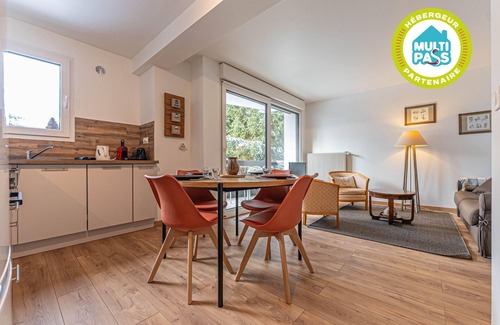 The Nael apartment is located in the center of the village resort of Les Gets in the French Alps (Haute-Savoie), close to all amenities: restaurants, shops, cafes, supermarket, cinema... It is also 2 minutes away on foot from the ski and mountain bike trails (160 meters), which makes it ideal for a car-free stay!Despite its central location, the Nael apartment is located in a quiet street and a peaceful residence, and even benefits from a garden view.Located on the 2nd floor, it opens onto a small hall serving separate WCs, a bathroom (completely renovated early 2025) and a large double bedroom. With its King size bed (180*200), its sober decoration and its charming loggia, this room is a haven of peace conducive to restful nights.The living room is an extension of the entrance, and is made up of a kitchen-dining room open to the living room. The kitchen, completely renovated early 2025, has all the necessary equipment (dishwasher, kettle, microwave, oven, toaster, Nespresso coffee machine, fondue maker, etc.) and has large storage cupboards.The living room, which offers a second bed with its two-seater sofa bed (140*190), opens onto a southwest-facing balcony from where you can admire the view of the garden.Further information :- towels and bed linen are provided; beds are made on arrival.- wifi is free and accessible throughout the accommodation.- this accommodation is non-smoking and animals are not allowed.- the apartment is rented with a parking space in the Chavannes underground car park (160 meters) during the winter season (from December to April). The rest of the year, public parking spaces are free throughout the resort of Les Gets. Possibility of unloading luggage at the foot of the residence before parking the car.- it is possible to store ski equipment or bicycles in the secure collective room of the residence.- it is also possible to store your personal bicycles safely in our partner store located right next to the apartment.- a security deposit will be requested upon arrival.
