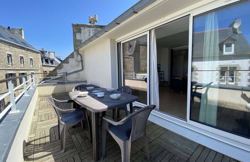 This apartment is located a few steps from the dynamic port of Roscoff, all amenities and the heart of the corsair city. The apartment is organized as a duplex on the 2nd floor. The ground floor leads to an entrance, a living/dining room with TV opening onto a terrace of approximately 15 m² with a view of the port, as well as a separate fitted and equipped kitchen (refrigerator, oven, microwave, -crockery, 4 ceramic hobs, extractor) and a separate WC. The floor houses two bedrooms: the first with a double bed (140x190) opening onto a balcony and the second with 2 single beds (90x190) and window under the roof. A bathroom with shower, washer-dryer and a 2nd separate WC. Free Wifi connection in the accommodation. Free public parking located about 300 meters away. The advantage of this apartment: The proximity of the port of Roscoff, the alleys with the sculpted facades of a corsair city and the pier for the typical Ile-de-Batz. Cleaning with disinfection included. Unless stated, services such as cleaning, bed linen, towels etc. are not included in the price of this rental. Only equipment mentioned in this advertisement are present. Equipment not mentioned are not considered to be present.