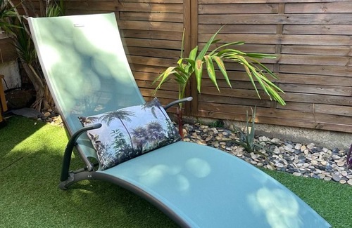 Cosybelle Evasion, a comfortable studio, is located 150 m walk from Grand Fond beach in Saint-Gilles-les-Bains, close to shops and amenities. The accommodation, air-conditioned + fan, is on the ground floor of a secure residence with private parking. This cocoon has a covered terrace and a private green garden of 50 m², ideal for relaxing on the deckchairs, as well as a stretched canvas, a plancha ideal for gourmet meals outdoors and an outdoor shower. This large studio includes: • a 160 x 200 cm hotel-quality storage bed. • A bathroom with a walk-in shower and WC. • A fully equipped kitchen, open to a cozy living room with tropical and Creole decoration, furnished with a TV and WIFI. At your disposal at Cosybelle Evasion: beach towels, bed linen, bathroom and household linen, washing machine, oven, microwave, espresso machine, kettle, fridge/freezer...
