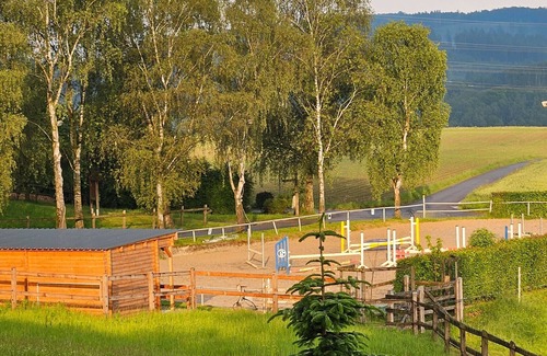 This accommodation offers a shared kitchen as well as a communal outdoor area with a garden, four covered terraces, a barbecue, and a playground. It is located near the beach and a tennis court, and public transport is within walking distance. There are 10 parking spaces available on the property. Pets, smoking, and events are not allowed. Homemade and homegrown products are offered. The accommodation is equipped with light- and water-saving facilities, and part of the electricity is generated by photovoltaic systems. A free shuttle service to the train station is available. After booking, you will receive a contact form that you should fill out completely to best prepare your stay. Riding lessons, pony rides, and bakery service are available on request and for an additional fee.