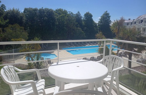 T3 apartment of 56m2 on the first floor of a luxury residence with heated swimming pool (from mid-May to mid-September) and paddling pool, 150 meters from the first beaches and the Beg-Meil hold (Depart Glénan Islands).