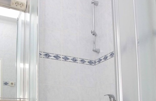 BATHROOM: Size of the bathroom is: 4 m2. Equipment in the bathroom: shower cubicle, toilet, bath towels, tiles.