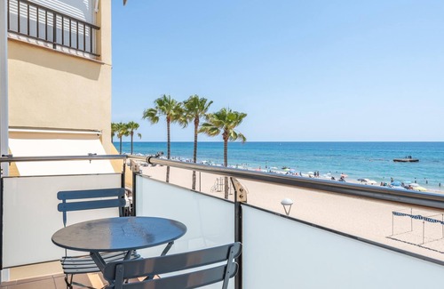 Apartment with terrace and frontal sea views is located in Torredembarra. Apartment with terrace and frontal sea views provides accommodation, featuring Wheelchair Accessible, Sports/Activities, Fireplace/Heating, among other amenities. This Apartment features Wheelchair Accessible, Sports/Activities, Fireplace/Heating, to make your stay a comfortable one.