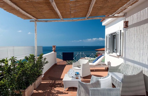 Acquazzurra is an exclusive complex of apartments with pool that lies on a charming stretch of the Cilento coastline close to Villammare, a small seaside village not far from Sapri. Overlooking the enchanting Gulf of Policastro, this residence enjoys a prime location that invites its guests to truly experience the magic of this unique place rich in history, tradition and magnificent marine and mountain landscapes to discover. From the natural beauty of the Cilento National Park to the archaeological sites of Paestum and Velia, from the monastery Certosa di Padula to the lively town of Palinuro, to Maratea. This wonderful complex offers 10 refined apartments, all well-appointed and designed for the ultimate in comfort and style. The inviting dwellings feature thoughtfully chosen accessories and furniture, such as colourful wall decorations, lamp shades and ceramics. Each apartment has its own outside seating area and is equipped with air conditioning, satellite TV and internet access. These tasteful interiors are complemented by a welcoming atmosphere that allows guests to simply sit back and relax poolside or at the terrace bar with panoramic sea views. Whereas - for unforgettable swimming experiences in crystal clear waters - the beach can be reached directly on foot from the apartments.