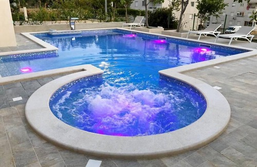 Yes, this Znjan apartment has a swimming pool. Check the Facility Overview section for details about the pool and other available facilities.