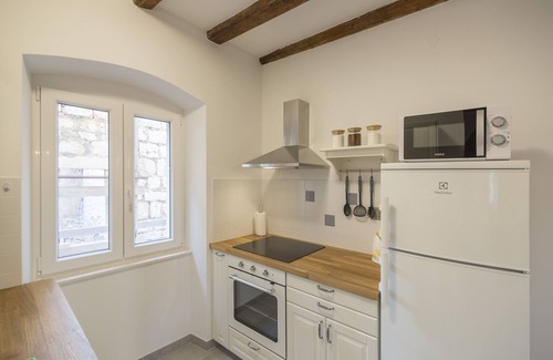 The apartment is located near the center and Riva (city walking are), only 20 m away, and yet hidden enough to guarantee peace. Parking is not part of the accommodation, but it is located nearby, and we will direct you on arrival where you can park. The apartment consists two bedrooms, kitchen with dining room and living room. Air conditioned, free internet. Location is close everything, beach, market caffe shops, restaurants, atm etc. We look forward to your arrival!