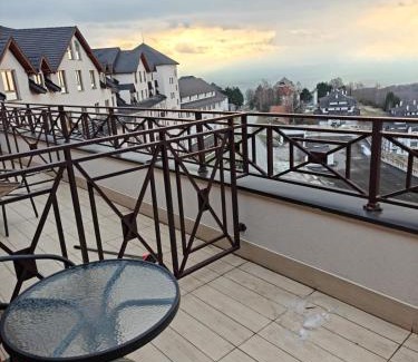 Providing a bar, Apartments Kos - Milmari Resort offers accommodations in Kopaonik. Both free Wifi and parking on-site are available at the apartment free of charge. The apartment provides a sauna and a 24-hour front desk. Apartments Kos - Milmari Resort provides guests with a patio, garden views, a seating area, cable flat-screen TV, a fully equipped kitchen with a microwave and a fridge, and a private bathroom with walk-in shower and slippers. All rooms are fitted with a pool with a view featuring mountain views. The rooms are equipped with heating facilities. Guests can eat at the on-site modern restaurant, which is open for dinner, lunch, and high tea. For guests with children, the accommodation features both an indoor and outdoor play area. Guests at Apartments Kos - Milmari Resort can enjoy skiing nearby, or make the most of the garden. Morava Airport is 70 miles away.