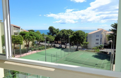 In a residence with two tennis courts close to the beaches and shops. Three-room apartment - Level 3 with elevator - South exposure - 44m² - Glass loggia - Sea and tennis view - Kitchenette with 2 electric plates, fridge, oven and cookware - Separate shower room and WC - Bedroom with 1 bed 2 people - Bedroom with 2 single beds - Living room with 1 double sofa bed - TV - Washing machine - Collective parking in the residence. Clévacances label: 2 keys.
