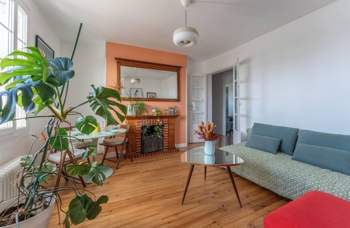 Discover this beautiful 65m² apartment, entirely renovated in 2022, with a vintage and bucolic style. Located on the 4th floor (no elevator), this rental comprises :