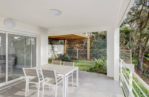 In a green, quiet and protected environment, at the entrance of the beach and easily accessible, this accommodation will allow you to spend a chill and relaxing stay while being close to numerous activities. 5 min away by foot from the city center and 10 min from Cavalaire port, you will be able to enjoy all the shops, bars and restaurants of the sea resort, as well as trying your luck at the casino ! You will also discover St Tropez or Grimaud historic village, both 25 min away by car. At last, plenty of paths will make you explore the coast and its wonders.