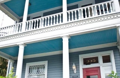 Your suite includes a king bed, living area with TV, sofa sleepers, private bath, and kitchenette with microwave, fridge, sink, dishes, and coffee maker. Enjoy the peaceful garden with artisan fountain, shaded seating, and courtyard charm. Arbor House Suites are four restored 1903 homes in downtown San Antonio, just steps from La Villita, River Walk, Convention Center, and Alamo. One parking space included; extra $25/night. $25/night cleaning fee applies.
