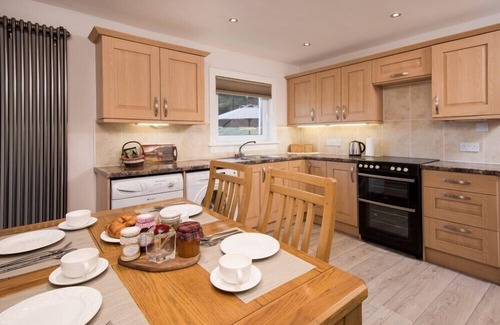 Amenities: Central heating with woodburning stove. Electric oven, grill and hob, microwave, fridge, freezer, washing machine, tumble dryer, dishwasher, food mixer and blender, slow cooker. Smart TV, Sky, BluRay player, WiFi, books, games, maps. Fuel, power and starter pack of logs inc. in rent. Bed linen and towels inc. in rent. Highchair and travel cot. Ample off-road parking. Enclosed gardens to three sides with lawns, decking area with furniture and hot tub. Pet-friendly. Sorry, no smoking. Shop 6.9 miles, pub 6.8 miles. Note: Though electricity is included in the rent, electric for charging cars is not included in the rental. Note: Please bring own linen for travel cot