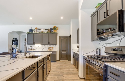 Situated within the Sonoran Desert lies this chic 3-bedroom, 2.5-bathroom Goodyear vacation rental. Boasting a fully equipped kitchen, a private putting green, and an inviting interior, this home has it all. Spend your days grilling out on the patio, splashing around in the private pool, or perfecting your swing on the putting green. Then, head out for a peaceful hike at Hole in the Rock. Return home to relax in the hot tub before ending the night by the fire pit table, watching the sunset!