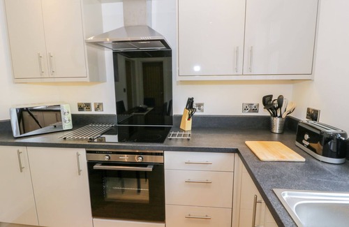 Amenities: Gas central heating and gas fire. Electric oven and induction hob, microwave, fridge, toaster, kettle, dishwasher, fridge/freezer, washing machine, tumble dryer, TV with Freeview, a selection of books, games and WiFi. Fuel and power inc. in rent. Bed linen and towels inc. in rent. Travel cot and highchair. Unrestricted roadside parking on a first-come, first-served basis. Enclosed lawned garden and patio area with furniture. Two well-behaved pets welcome. Sorry, no smoking. Shop 0.01 miles and pub 0.4 miles. Note: Dogs are to be kept on the ground floor. Note: Though the garden is enclosed, it is not secure and pets and children should be supervised at all times.