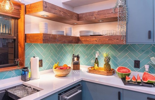 Prepare a delicious meal in the custom-designed kitchen stocked with all the essentials and gather with the whole crew at the rustic live edge dinning table (seats ten).