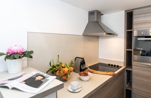Located on a quiet street just one block away from the stunning French Riviera, the 1-bedroom Artistic Riviera 7E Sweet Inn vacation apartment offers a stylish, romantic abode in one of Juan les Pin’s best areas. This upscale town is known for its tranquil yet glitzy vibe, beautiful beaches, art deco architecture, art galleries, fine dining and chic nightclubs. The apartment is a short walk to the beach (2 minutes), the Juan-les-Pins Casino (5 minutes) and the lovely Juan Menage Park (15 minutes). At your doorstep you’ll find plenty of shops, cafes and bars. The apartment is five minutes away from the Juan-les-Pins train station and an hour from the Nice and Cannes airports.