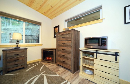 The Ash Mountain Suite is very spacious (450 sq feet) with amazing mountain views! The Suite has a queen bed, private shower, toilet and dressing area as well as a dining table, electric fireplace and Roku TV. Also, the Suite has a kitchenette with a wet bar, mini refrigerator, microwave, toaster, Keurig coffee maker, teapot, dishes and utensils. NOTE: We do not have an oven/stove. We provide complementary coffee, tea and a snack basket with oatmeal, popcorn, healthy snack packs, protein bars, chocolates & bottled water. A perfect place to relax, unwind and enjoy nature with magnificent views of Ash Peak and Red Mountain. Also, our location is wonderful for bird watching during the day and stargazing at night. We have a propane BBQ grill with two picnic areas as well as a meadow to enjoy.