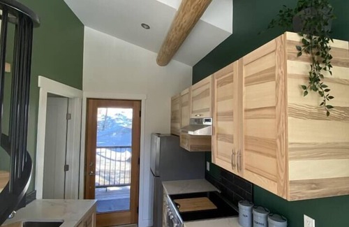 Welcome to the Aspen House! Well appointed and "oh so" cute, the Aspen House is the perfect escape. Located directly above Golden our new custom built home boasts magnificent views of the Columbia Valley and Kicking Horse Ski Resort. We’re a 5 min drive to town and a 5 minute walk to the Skybridge. Explore our hiking trails and our expansive property. Guests can either sleep in the queen sized bed on the main floor or double sized bed in the loft. The loft access is quite unique, a bespoke spiral staircase, just one of the creative features in this space. Aspen House has a full bathroom and well stocked kitchen. Enjoy the private back deck with views of the Ski Resort. Private entrance with keyless door code will be supplied before check in. On site parking for 2 vehicles. We live on the property and are happy to help if need be. Rural but very close to town (5 min) -5 min drive to town 5-10 min walk to Golden Skybridge on our trail system. +/-30 min walk to town
