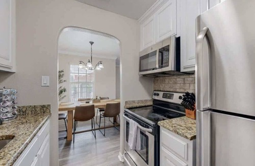 Charming 2BR/2BA apartment just steps from AT&T Stadium in a quiet, peaceful neighborhood. Perfect for game days, concerts, or a weekend getaway. Fully equipped with all the essentials—Wi-Fi, kitchen basics, and cozy furnishings for a comfortable stay. Walk to major events, then relax in your home away from home. Ideal for families, friends, or business travelers.