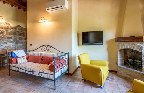 Experience a unique vacation in this lovely property where tradition and modernity shake hands. Feel transported back in time in the stone walls of your accommodation without sacrificing comfort. You can bring your beloved four-legged friend and look forward to a relaxing and peaceful time in the wonderful Italian countryside. Enjoy the magnificent view of the Monti Sibillini National Park while you take a few morning and refreshing laps in the pool. Afterwards, sunbathe on the loungers while your dog romps around the grounds. On warm summer evenings, take the opportunity to prepare delicious barbecues with local ingredients in the outdoor kitchen on the terrace and eat them with your partner and loved ones.