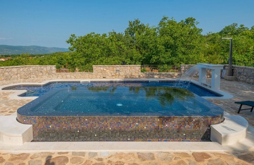 In the quiet and idyllic hinterland of central Dalmatia lies this comfortable and beautifully furnished vacation home. On the first floor are three bedrooms, two bathrooms, toilet and kitchen with living room. In the basement of the house, which is accessible by an internal staircase, there is the living area, decorated in Dalmatian style and a fitness room. In the garden, next to the swimming pool, there is the covered terrace. The little ones will enjoy the children's playground. The terrace on the east side of the house offers a beautiful view of the town of Imotski, whose center with a wide range of tourist attractions is about 5 km away. You can also visit the Red and Blue lakes. Bicycles and a multifunctional playground for soccer, badminton and a basketball hoop are at your disposal.
