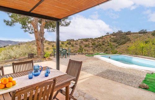 A real finca atmosphere awaits you in your vacation home in southern Spain. The rural-style house exudes peace and relaxation. Start the day with a sumptuous breakfast on the terrace in front of your vacation home, where there is plenty of seating for a cozy get-together. Your spacious vacation home is also comfortably furnished inside, creating the perfect feel-good atmosphere. But the best thing of all is the breathtaking view. Whether you are preparing your meals on the brick-built outdoor barbecue, refreshing yourself in the pool or playing cards on the terrace, you have a fantastic panoramic view of the surrounding mountainous landscape.