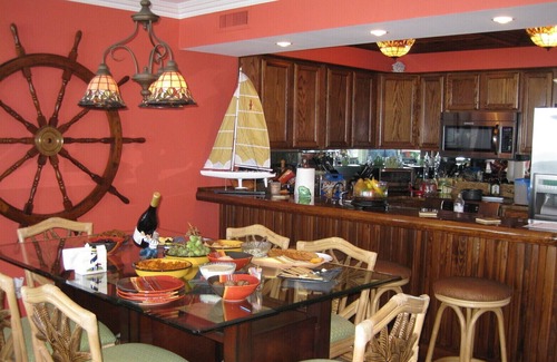 Inside you’ll be amazed with the exquisite amenities, the nautical theme, tropical colors, and unique furnishings. A perfect, well-equipped kitchen awaits the chef in your crew with granite counter tops, new top-line stainless steel appliances including a slide-in range with glass cook-top and warming drawer, an Executive Chef cast iron sink and instant hot water dispenser. A gorgeous handcrafted Cypress-wood bar, with four bar stools, separates the kitchen and dining area which includes a glass-top table, six palm-tree chairs and a wine bar/cabinet. The living area is appointed in a maritime theme with bright, comfortable furnishings, lots of glass to bring the ocean and beach right inside and a custom-designed, hand-crafted Cypress-wood entertainment center complete with 50” HD flat screen TV including DVR, surround sound, Blu-ray player with CD and iPod docking and a Wii Game Console. On the balcony, you can have lunch, cocktails or just relax on the glider or lounge chairs while you enjoy the beautiful view of the beach below and feel the ocean breeze blowing across your face.
