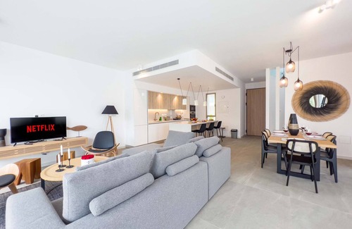A peaceful retreat for those who want to take advantage of a modern luxurious lifestyle.Azure Villas define the ultimate getaway from the hassles of everyday life. Seaview, sunset and sunrise views, a modern lifestyle and a private pool and garden.The villa is brand new (year 2022) and fully equipped with everything you need to ensure a perfect self-catering stay.This 3-bedroom villa with its own private pool, has good outdoor space (including BBQ) with sun-loungers and outdoor furniture for total relaxation.Inside this holiday home is bright and airy, fully air-conditioned, with an open plan living dining area with a fully equipped kitchen, a breakfast island and with everything you will need for your holiday break.The living area hosts a corner sofa with a widescreen TV with lot of satellite channels and free WI-FI connection and the private swimming pool is accessible via the patio doors. A guest WC is also found on this level.Leading upstairs, you'll find 3 comfortable bedrooms. A master en-suite double bedroom, a twin bedroom and another with one single bed and a double sofa bed. All 3 bedrooms have wardrobes and black-out curtains and also there is a direct access to a balcony that overlooks the swimming pool. All bedrooms share the family bathroom.A great holiday home for families in a quiet area with everything within easy reach. Please be advised that there are building works nearby that are not controlled by L.A. Mer Homes. 𝗠𝗘𝗗𝗜𝗔 𝗧𝗘𝗖𝗛𝗡𝗢𝗟𝗢𝗚𝗬Free High-Speed WiFi, Free Air Conditioning (limited usage allowance) Free Satellite TV with multiple channels and different languages to choose from; Watch your favorite movies, TV shows and sports events live and on-demand! 𝗧𝗥𝗔𝗩𝗘𝗟𝗟𝗜𝗡𝗚 𝗪𝗜𝗧𝗛 𝗜𝗡𝗙𝗔𝗡𝗧 𝗖𝗛𝗜𝗟𝗗Family holidays are one of life’s most important events. After all, how often do you get these precious moments to unwind together? That being said, the thought of taking little ones away can be a daunting one you don't want to come home more stressed than when you went! That's why we've decided to provide a number of essential safety extras, specifically with toddlers and babies in mind.Any safety extra you choose to add to your booking, will be waiting for you upon arrival, so all you have to focus on is first steps and fun in the sun. Get ready for unforgettable family moments! 𝗣𝗥𝗜𝗖𝗘 𝗜𝗡𝗖𝗟𝗨𝗗𝗘𝗦Our price always includes the following: Air-conditioning (limited usage allowance), Basic Pre-Arrival and Departure clean, fresh bed-linen towels, High-Speed WiFi, Free Parking.Age requirements: Young groups under the age of 25 are not accepted.